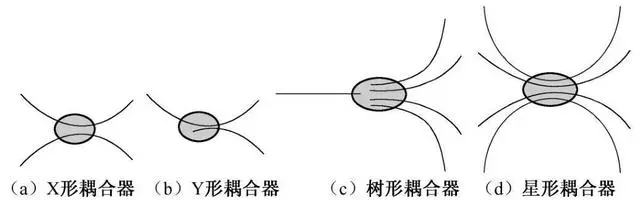 从端口形式上划分,光耦合器包括X形(2×2)耦合器、Y形(1×2)耦合器、树形耦合器以及星形(N×N,N>2)耦合器等,如图所示。