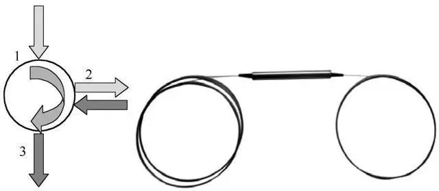 光环行器有多个端口,其工作原理与隔离器类似,主要用于光分插复用器中。典型的环行器一般有三个或四个端口,如图所示。
